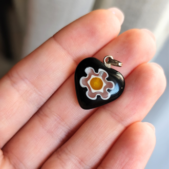 1,50 €Ciondolo a cuore in stile Murano colore nero con fiore a contrasto