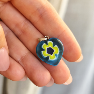 1,50 €Ciondolo a cuore in stile Murano colore turchese con fiore a contrasto