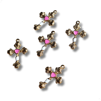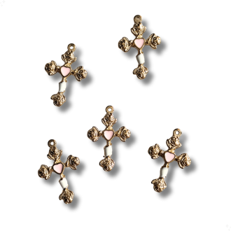 5,49 €charm croce gothic chic in acciaio inossidabile dorato con cuoricino smaltato rosa chiaro