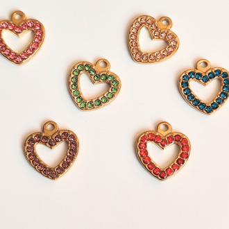 2,70 €charm cuore dorato in acciaio inossidabile con cristalli incastonati
